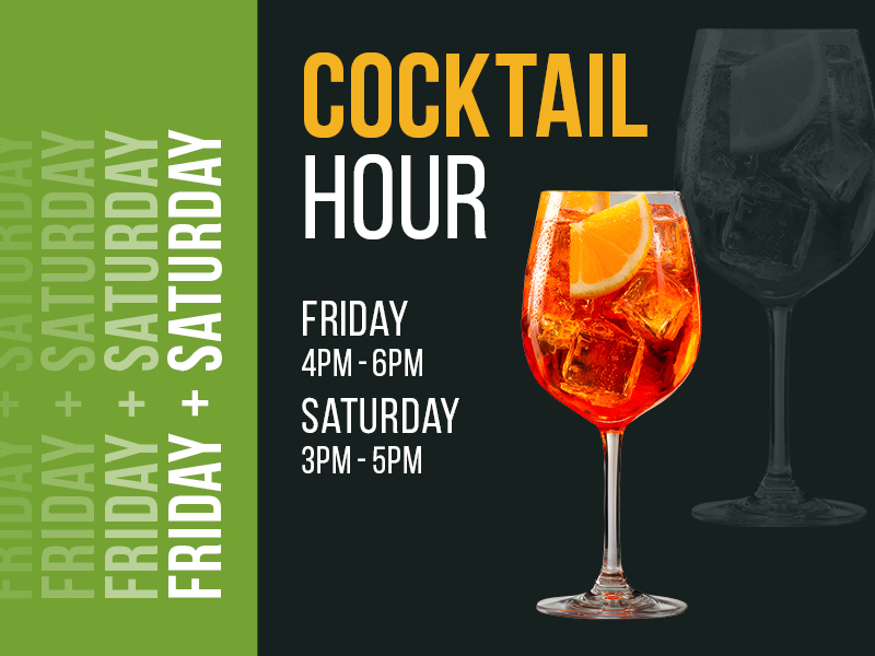 Get classic cocktails for just $18 on Fridays from 4pm-6pm and Saturdays from 3pm-5pm.